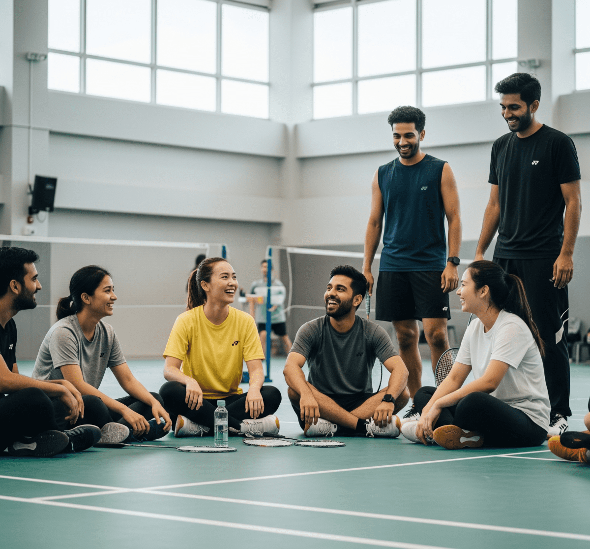 🏸 3 game rotations + water break hangouts
