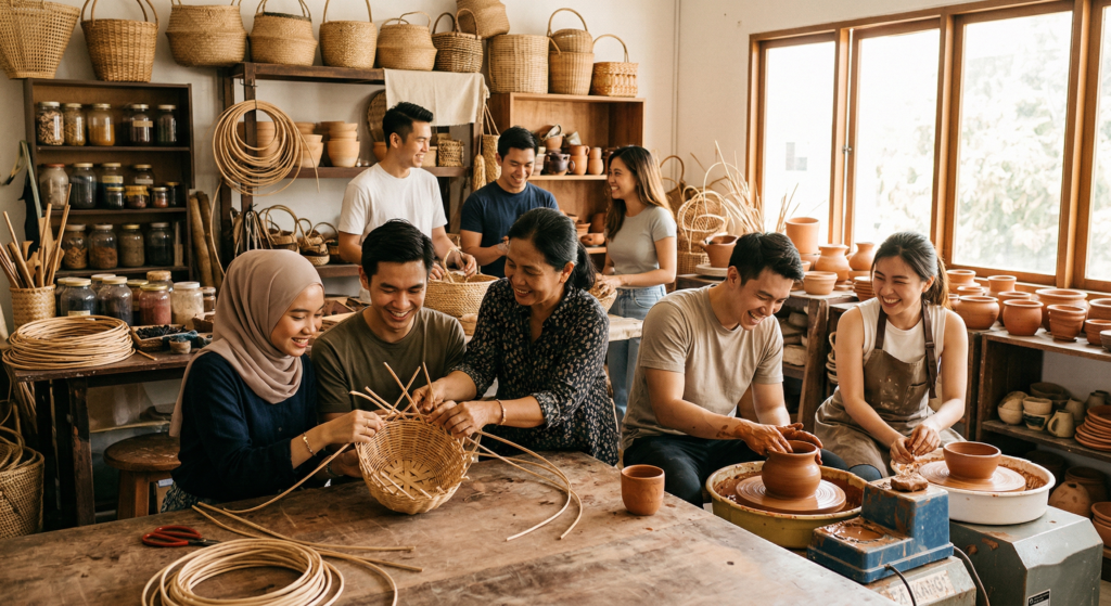 Locals gather to explore the hands-on joy of traditional crafts at one of Malaysia’s beloved weekend artisan workshops.